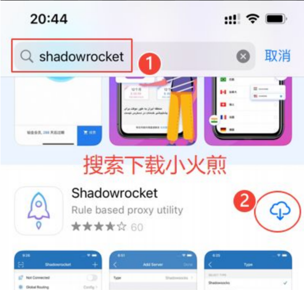 第①步、下载tiktok和小白云速器APP(Shadowrocket)