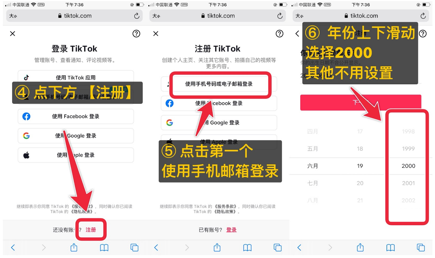 ### 1.使用公开账号下载Tiktok * ⚠️请一定严格按照教程步骤,勿擅自操作! > 💡公开账号是面向所有用户的共享 Apple ID。在手机设置中登陆此账号,可能会导致个人数据暴露或被清除,甚至可能使设备被停用。公开账号仅支持在AppStore商店内登录。严格按照教程操作百分百不会出现问题  * 1. 打开 AppStore,退出商店 ID 提供的免费ID操作仅限 AppStore 内,不要去设置登录  * 2.登录我们提供的免费 ID 时,提示 ID 安全 登录时提示 ID 安全点击其他选项,不升级,【注意:一定要点击其他选项,不升级】 注意:免费ID在下方,请确保看完教程再登录!  * 3.按照上方教程复制登录共享账号【如账号异常请更换账号登录下载】 * [⬇️ 点击此处前往获取苹果公开账号1](https://taotaofk.fun/share/bBrMqHnwtS) * [⬇️ 点击此处前往获取苹果公开账号1](https://taotaofk.fun/share/bBrMqHnwtS) * 4.搜索并且下载Tiktok【或者搜索下载您需要下载的软件】 搜索:Tiktok  * 5.下载完成需要的软件,请退出我们提供的ID  ### 2.使用Tiktok > > 1.【打开设置】【通用】【隐私安全】【关闭定位服务】 > > 先关闭定位服务等TikTok能用了,其他应用的定位才可以打开 > > 注意:TikTok的定位一定要关,其他应用定位可以等TikTok能用了再打开  > 2.下载完成后,打开【手机设置】【通用】【语言与地区】,点击【中国大陆】修改成【美国】,==改完地区之后请重启手机==  > > 如果您的TikTok黑屏您可以尝试把TikTok修改成别的国家,如日本,新加坡,台湾等地区... > > 多尝试修改地区,如果还是黑屏,您可以通过关机拔掉手机卡打开TikTok后再插上使用,百分百解决黑屏问题 > ==如果你的TikTok正常使用可跳过此步骤【TikTok签证版】== > > #### 往下滑动跳过签证版教程 即可观看TikTok注册教程!!! > > 百分百解决黑屏问题【免拔卡TikTok签证版】 > > 1.【设置】—【app store】—关闭【app 更新】  > > 2.下载Tiktok签证版 > > [👉 ①Tiktok签证版点击下载](https://www.xiguajiasu.shop/xigua/) > > [👉 ②Tiktok签证版点击下载](https://src.xiguajiasu.shop/xigua/) > > 备注1:要用苹果自带safari浏览器 打开网址安装,不能使用微信或者其它浏览器打开 > > 备注2:如果出现闪退、不可再用!就是掉签名了,请过来重新下载安装就可以了 > 3.安装Tiktok签证版  > 4.返回手机桌面,可以看到tiktok正在安装,耐心等待安装成功然后安装TikTok证书 > > 下载安装完成后,有提示以下弹窗进行以下操作  > 5.打开手机设置-通用-VPN与设备管理 (如果是IOS14以前的版本 按下方左图操作)  > 6.点击证书-信任证书-信任  > 完成后就可以使用TikTok签证版啦,如果突然出现黑屏等情况,那可能是因为签证掉了,把签证版TikTok卸载掉重新回来安装即可解决! > 注册TikTok > > ==加速器不要使用香港节点,加速器一定要开全局模式,如显示注册频繁请多== > > ==切换线路尝试注册,TikTok注册有几率不成功,一定要多切换线路,多尝试== > > 如果实在无法注册,可能是存在IP限制问题,建议购买成品账号>如果实在无法注册,可能是存在IP限制问题,建议购买成品账号 > > ### [👉点击购买 TikTok 成品账号👈](https://taotaofk.xyz/) > > 首先打开网页 TikTok 注册账号(下面有链接),复制下方链接去自带浏览器打开 > > https://www.tiktok.com/signup?enter_method=enter_personal_homepage&enter_from=personal_homepage&launch_type=0&lang=zh-Hans&redirect_url=https%3A%2F%2Fwww.tiktok.com%2Fprofile > >(自带浏览器打不开的话,换个浏览器再尝试,推荐使用谷歌浏览器) > 按照下面图示流程注册: > 【1】  > 【2】  > 【3】  > 【4】  > 登录TikTok客户端 > > 【1】  > 【2】
